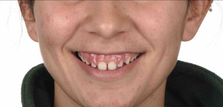 Después de 2 años de ortodoncia, nos derivan a esta paciente para valorar si los dientes están bien posicionados